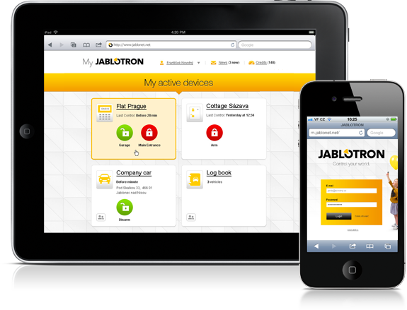 Zu Ihrer Alarmanlage JABLOTRON 100 werden Sie dank der kostenlosen Anwendung „MyJablotron“ aus dem PC oder dem Smart Phone von jedem beliebigem Ort Zugang haben. Grenzenlose Sicherheit durch einfachste Bedienung.